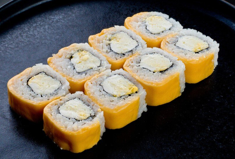 Нежное мясо краба, сочная креветка, свежий огурец и сливочный сыр в классической основе из риса и нори.