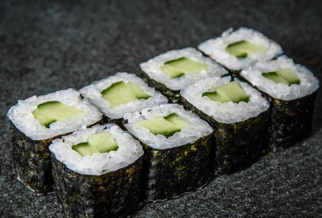 Свежий хрустящий огурец в нежном обрамлении риса и нори.
