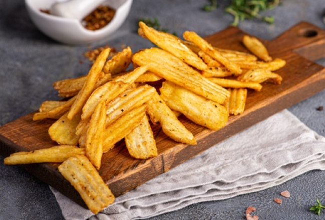 Тонкие рифлёные полоски картофеля с пикантной ноткой натурального лука и чёрного молотого перца.