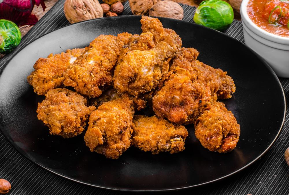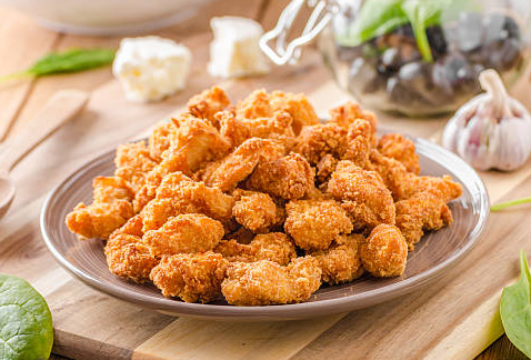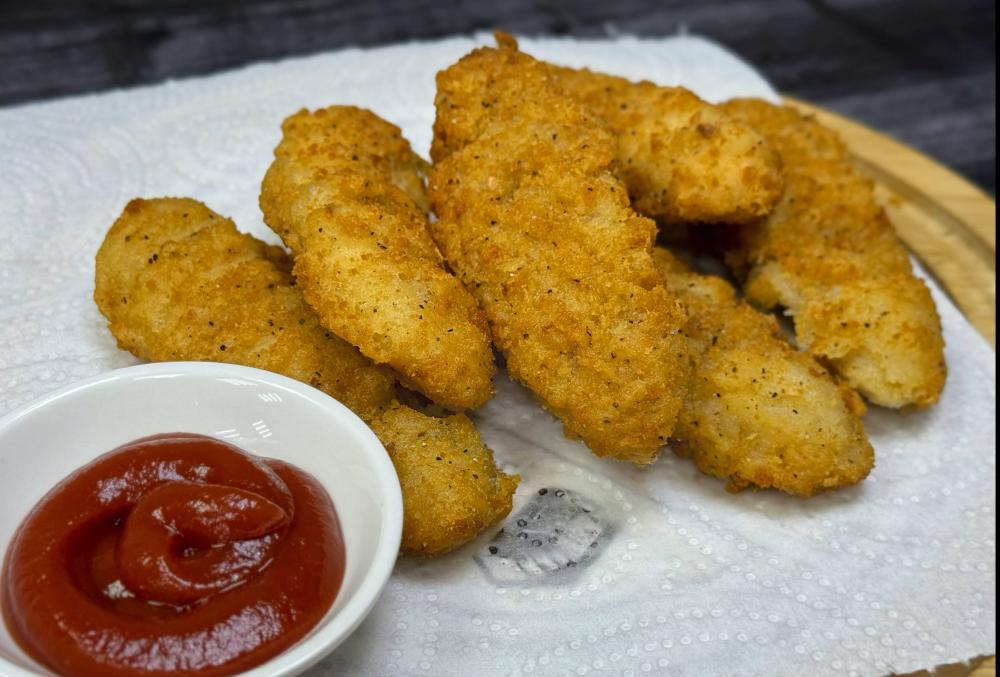 Нежные кусочки курицы в хрустящей золотистой панировке.